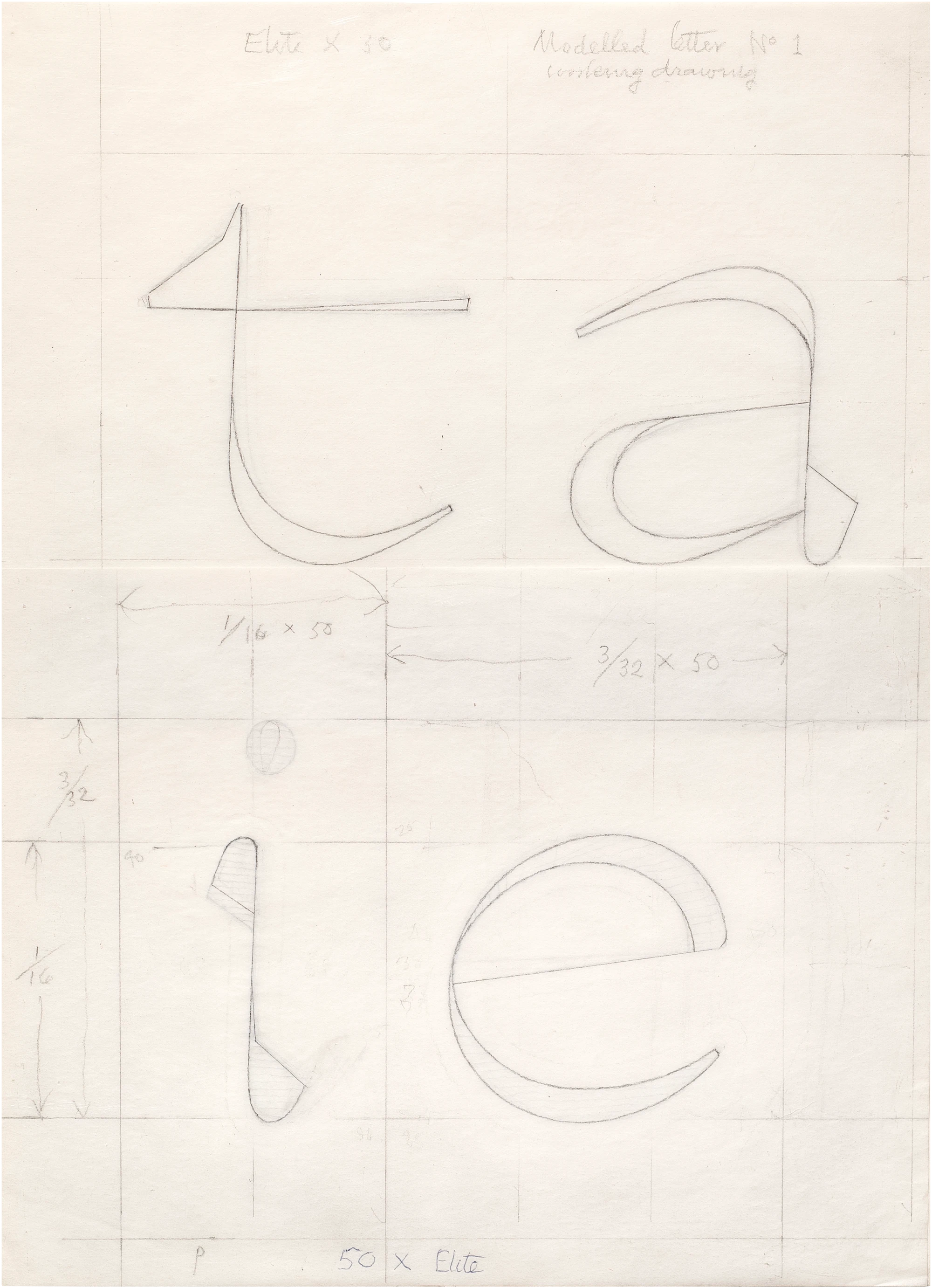 The letter shapes of G2 Ciao are derived from an historical sketch by the American typographer, book and puppet designer William Addison Dwiggins. The sketch labeled “Modelled letter N°1, rendering drawing“ shows the original four letters t, a, i, and e. They consist of individual elements, precisely drawn outlines, connectedonly by hairlines. No repetitive pattern is recognizable. Each letter follows a self-contained principle. After contacting Bruce Kennett, he is currently administrating W. A. Dwiggins’ estate, we found out that the sketch is probably a technical draft for a typewriter head, not a font. It’s a guideline for finding a form and embodies the possibility to change. This possibility and the idea of design being the instruction for something else layed the foundation for the above mentioned experiments and form studies, altering the original sketched letters and eventually resulting in the retail typeface displayed on this website.